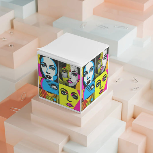 "Quartet of Pop Visages"! Artistic Sticky Notes Cube